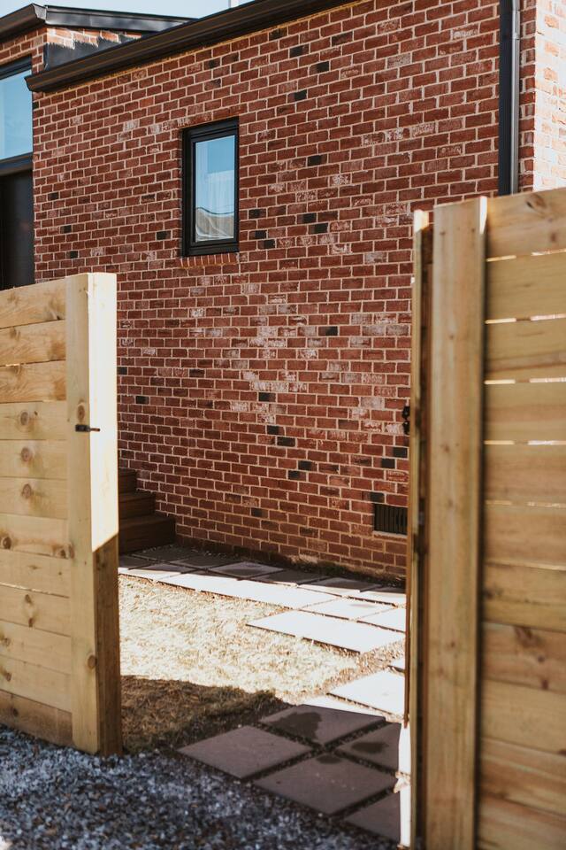 Welcome to our cozy brick house with a 14 foot vaulted ceiling and lots of natural light. Relax within the 700 sq ft floor plan with a full sized custom kitchen, counter seating, coffee station stocked with local beans, milk, sugar, and teas. Built in 2024, the guesthouse features a spacious living area, king bed, walk-in shower, in-suite laundry, and patio deck. You'll have free private off-street parking, a secure fenced in property, dedicated guest access, and a house all to yourself. The guest house, attached backyard patio deck, and parking area are yours to enjoy.